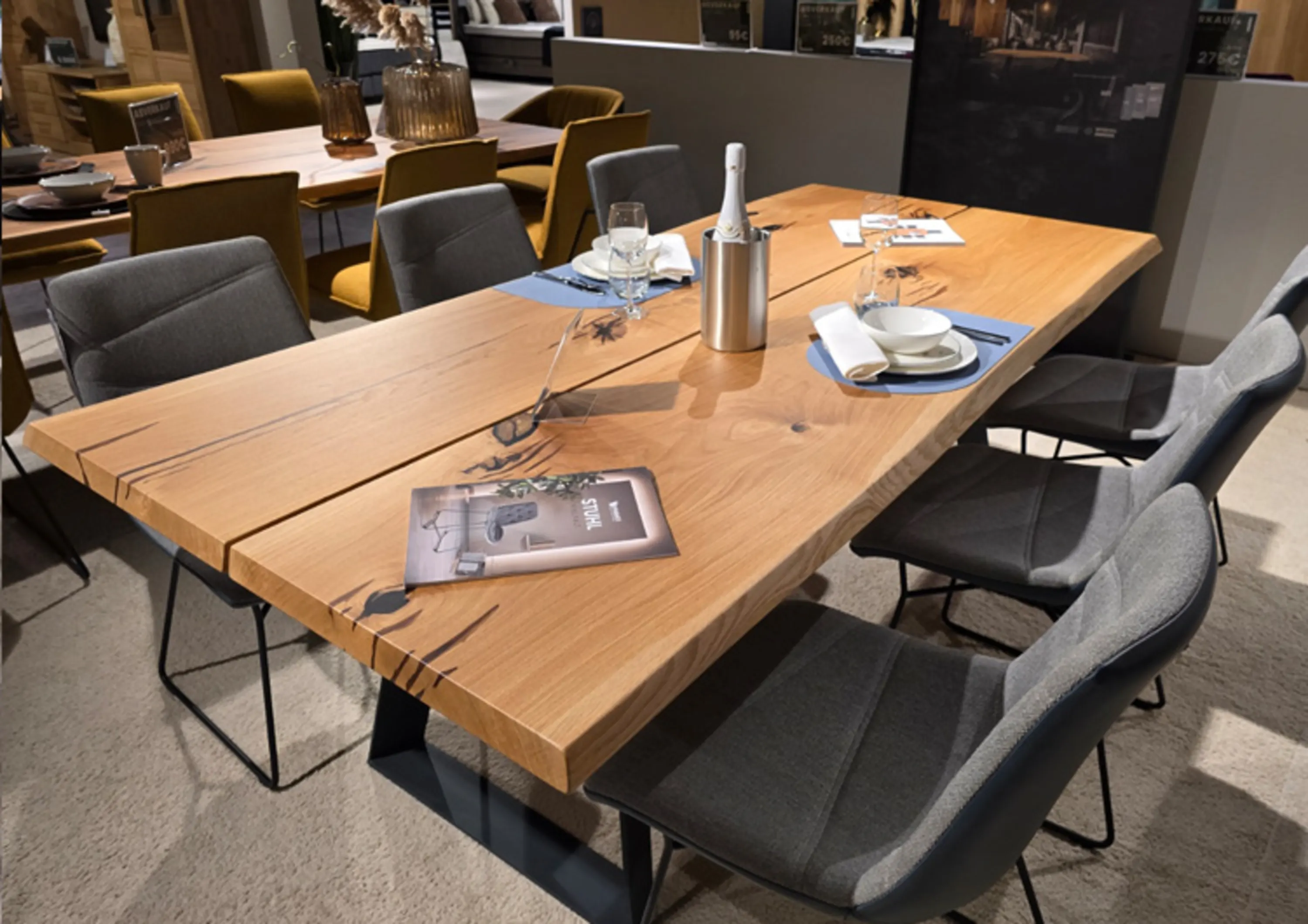 Der Esstisch 18Hundert ist ein echtes Massivholz-Unikat, dessen Tischplatten aus Bäumen gefertigt werden, die mindestens zweihundert Jahre alt sind. Durch die lange Wachstumszeit besitzen diese Hölzer eine außergewöhnlich ausdrucksstarke Maserung, die jedem Tisch seinen individuellen Charakter verleiht.